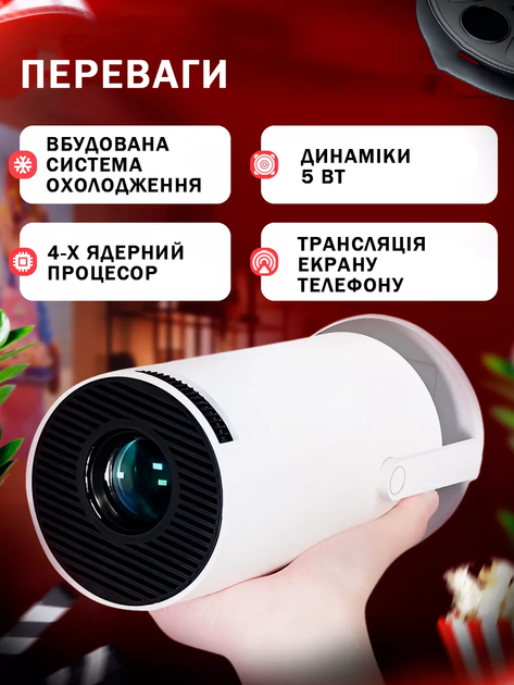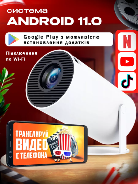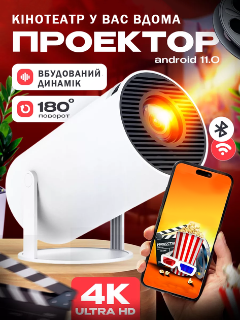 Портативний проектор 4K Ultra HD (Smart TV) — універсальний мініпроектор із чітким, насиченим зображенням і підтримкою роздільної здатності до 4K.